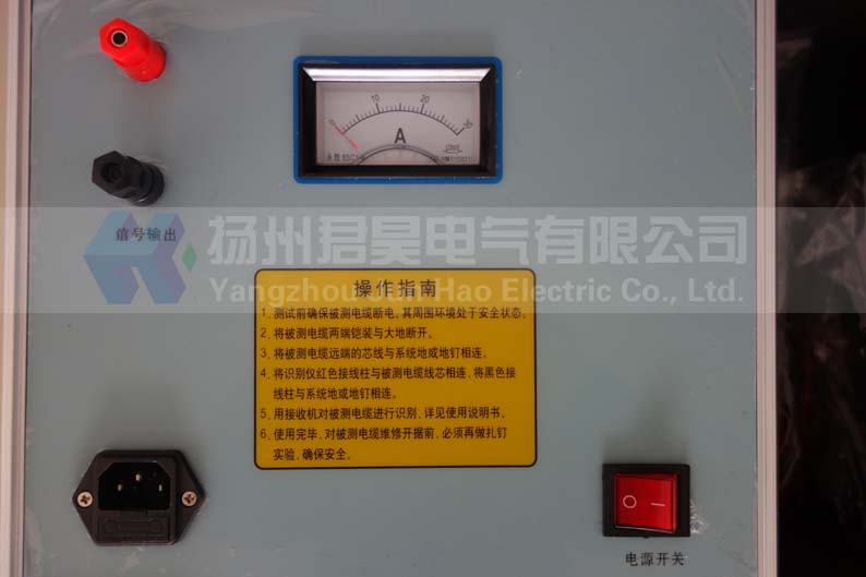 7. 輸出調節:用于調整主機電流大小,使用時根據測試電纜長短及接收器指示大小適當調節。順時針旋轉輸出電流增大。