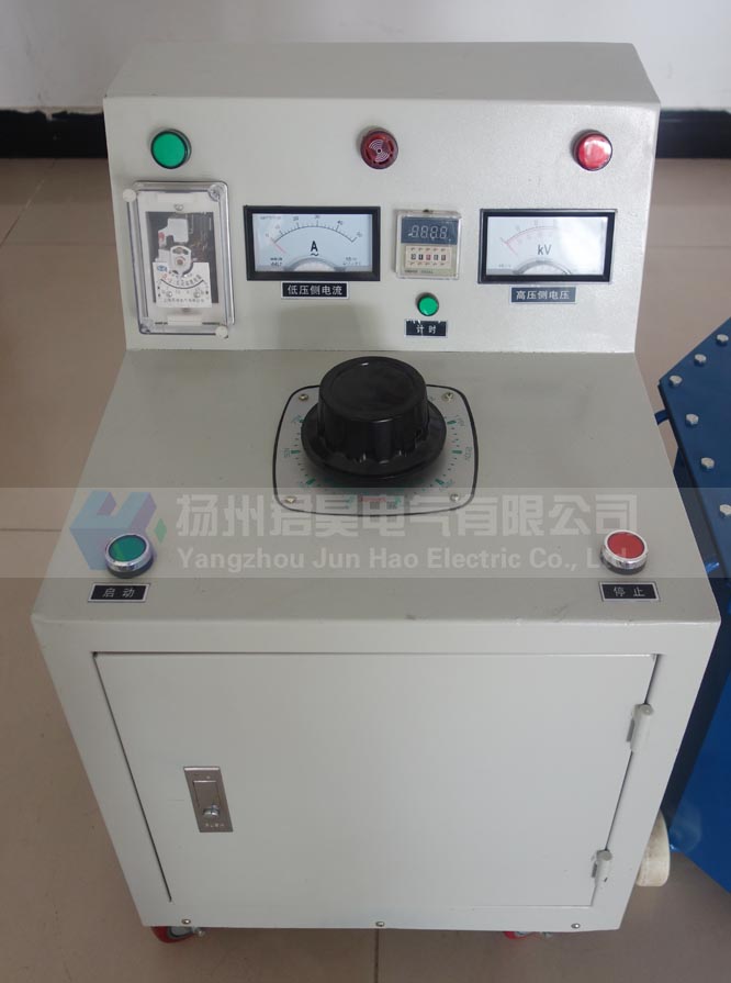 2、試驗前,檢查各部位的接線是否接觸良好,并檢查控制箱的調壓器是否調至"零"位;