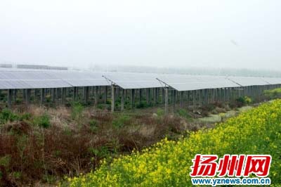 一根根水泥柱上,撐起一塊塊藍(lán)色光伏板,一眼望去,儼然就是藍(lán)色海洋……日前,記者來到寶應(yīng)縣柳堡鎮(zhèn)仁里蕩艷陽天新能源太陽能發(fā)電項(xiàng)目施工現(xiàn)場采訪,該鎮(zhèn)黨委委員、副鎮(zhèn)長姜貴山自豪地向記者介紹,這是江蘇省目前單體最大的光伏發(fā)電項(xiàng)目,占地3150畝,總投資20.8億元,預(yù)計(jì)可實(shí)現(xiàn)年發(fā)電收入1.6億元。